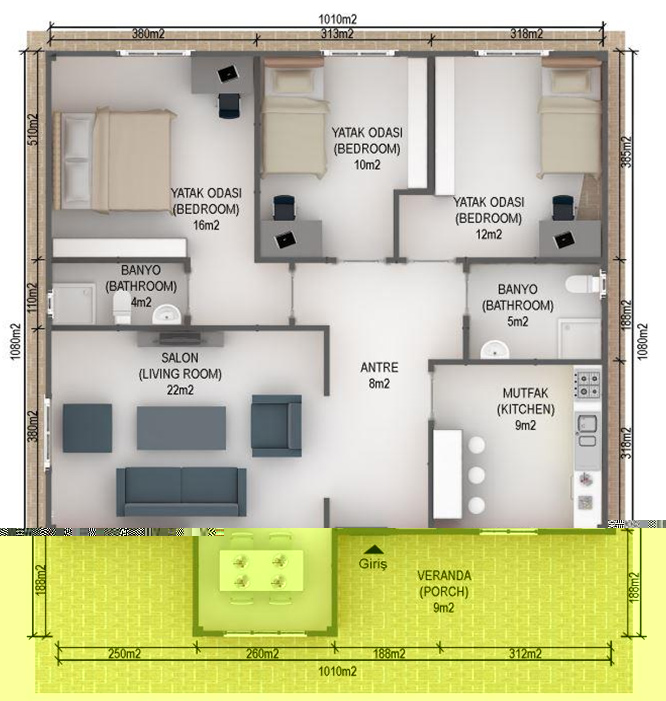 96 metrekare prefabrik ev